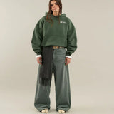 Esta sudadera con capucha de corte relajado destaca por su diseño minimalista y su estampado tipográfico en la espalda, que aporta un toque moderno y actual. Cómoda y versátil, es una prenda ideal para crear looks casuales con carácter.